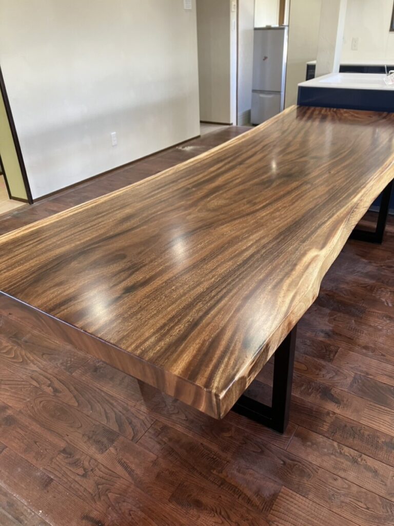 実績紹介に納品「ひたちなか市 Y様 モンキーポッド一枚板ダイニングテーブル」を追加しました