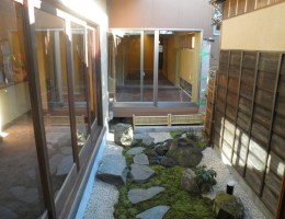 料亭 本館 トイレ男女 手洗い天板(欅無垢)