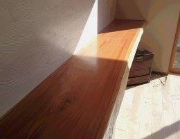 笠間市O邸様新築工事 杉天然付き一枚板座卓 カウンターと共木 (一枚板 テーブル)